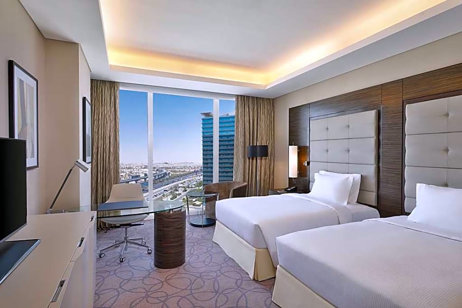 Features: A variety of eco-friendly features in our Hilton Rooms help to maintain our environment with less consumption of our natural resources. These cozy rooms come with a choice between a king-size bed or two single beds accessible rooms as well. Snuggle up in bedding that includes down comforters, designer duvets and a pillow menu. The contemporary décor extends to the marble bathroom, which features a combined and stand shower. Start the day with an infusion of your choice, courtesy of the free tea and coffee making facilities. Low floor, 42 Inch HDTV. Bed size: King bed: 180 x 79 in Accessible features such as shower seat and toilet grab bar